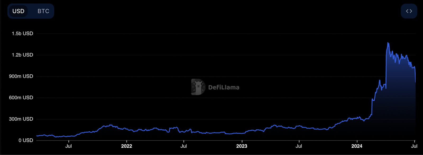 Despite being an incomplete and often misleading metric, Total Value Locked (TVL) can sometimes provide insight into the market’s appetite to put digital assets to use. While TVL across Bitcoin L2s skyrocketed in Q1 and the first few weeks of Q2, Q2 marked a dramatic downturn in the trend. TVL across major Bitcoin L2s decreased from $1.32B on April 9th to $800M at the time of writing. So what went wrong?
