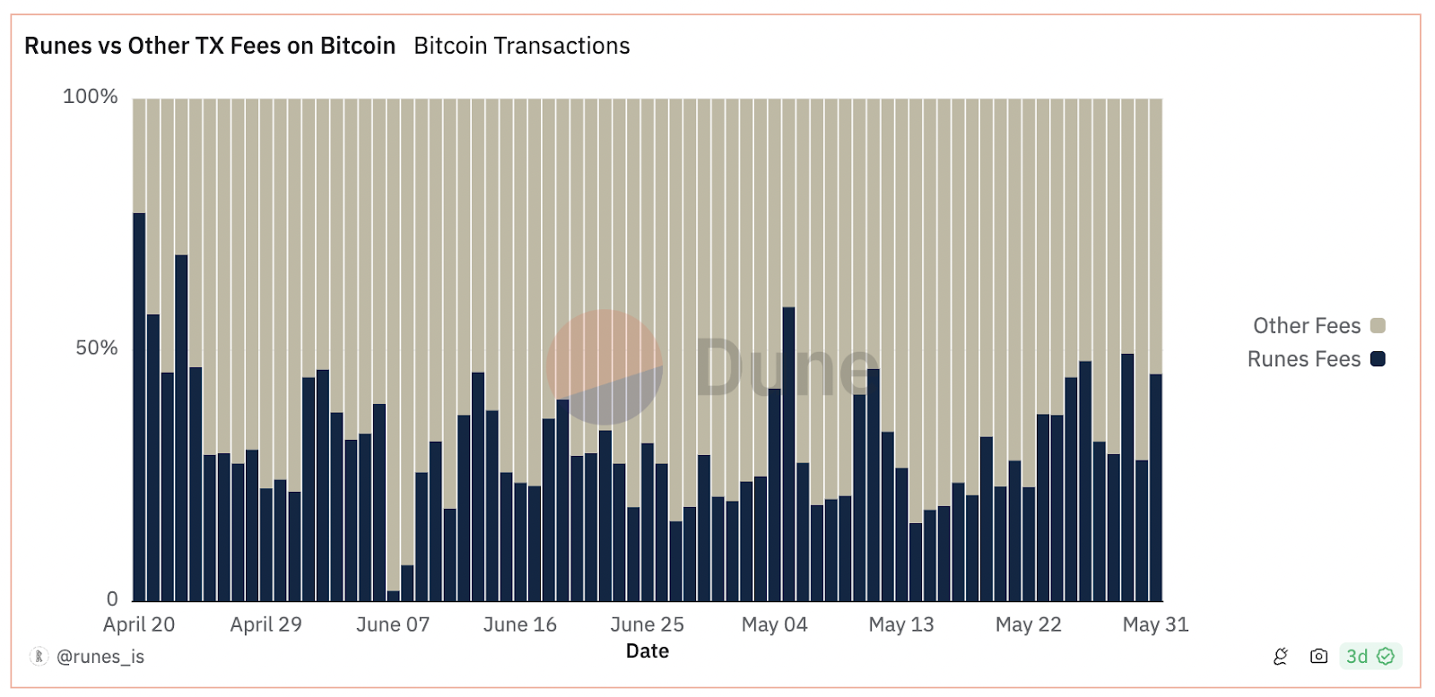 On-chain data is also here to support this thesis. Even as the price of most Runes has declined, they continue to represent close to 50% of all on-chain activity on Bitcoin in terms of transaction fees. UTXO will continue to make investments both into Runes and Runes infrastructure — we believe that tokens on Bitcoin are here to stay.
