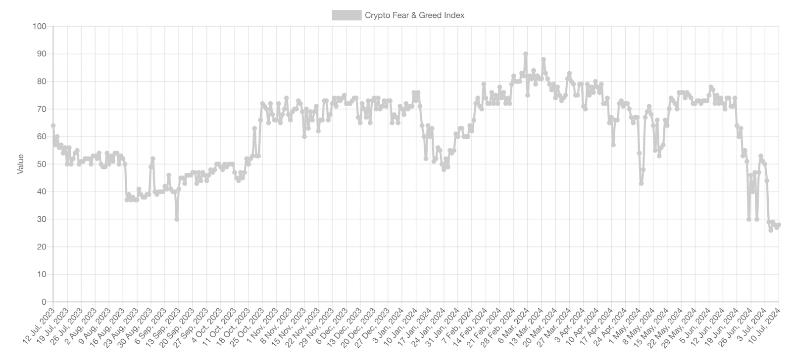 We started the quarter with Greed, and we’re ending with Fear. The Crypto Fear and Greed Index, typically used to gauge investor sentiment, started around 80 at the beginning of Q2 2024 and ended around 30 — a level not seen since September 2023.